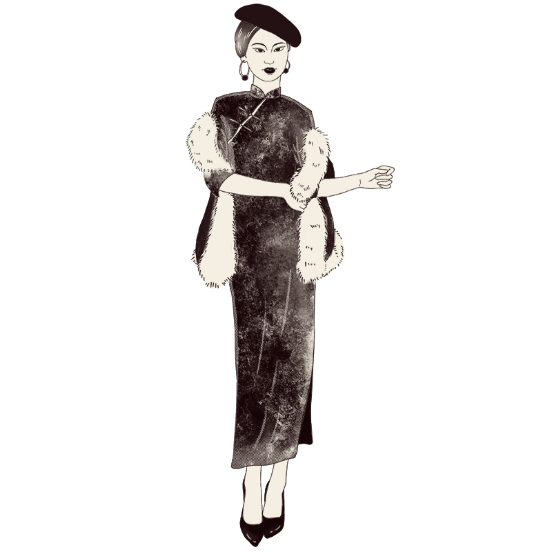 手绘-姐妹人物贴纸-旗袍女孩