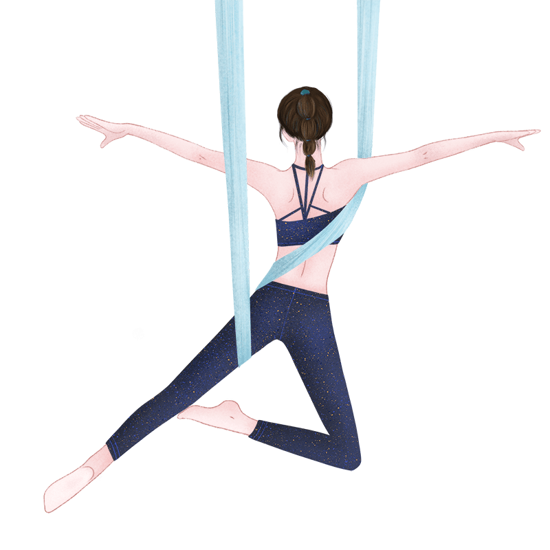 手绘-空中瑜伽运动女性人物插画2