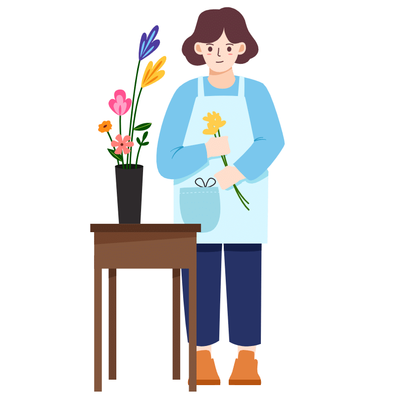 扁平-插花花艺女性人物插画-SVG4
