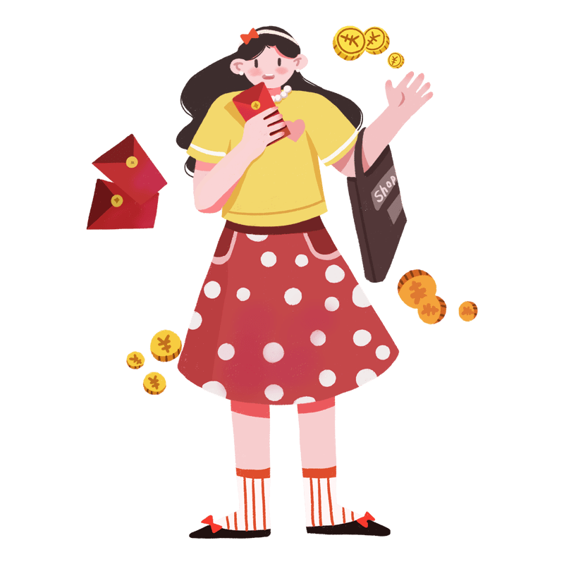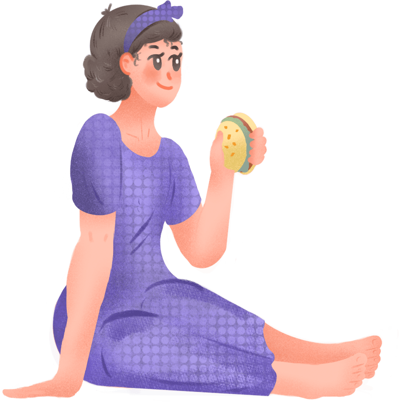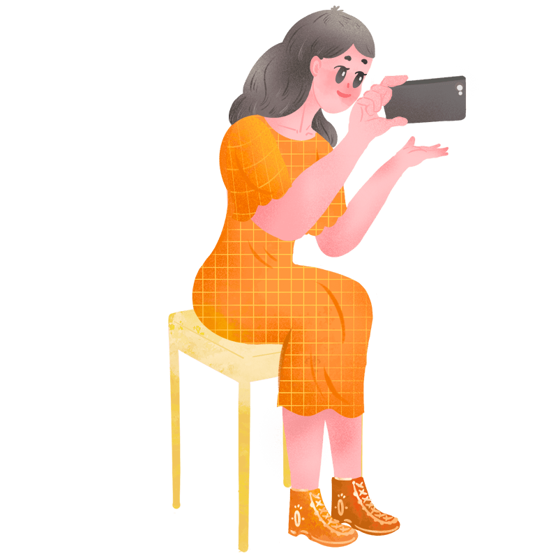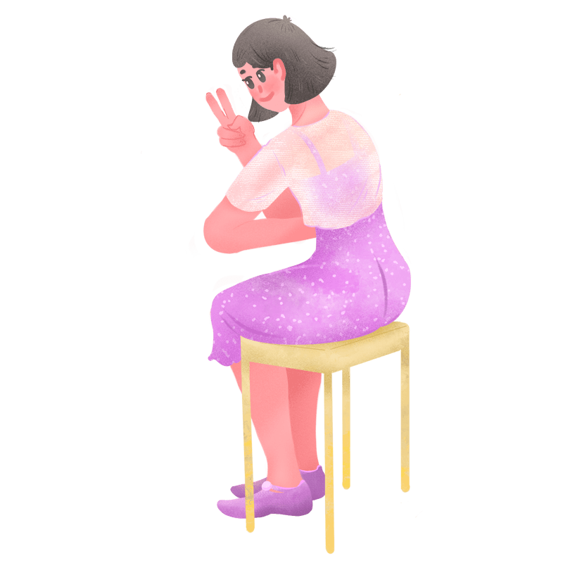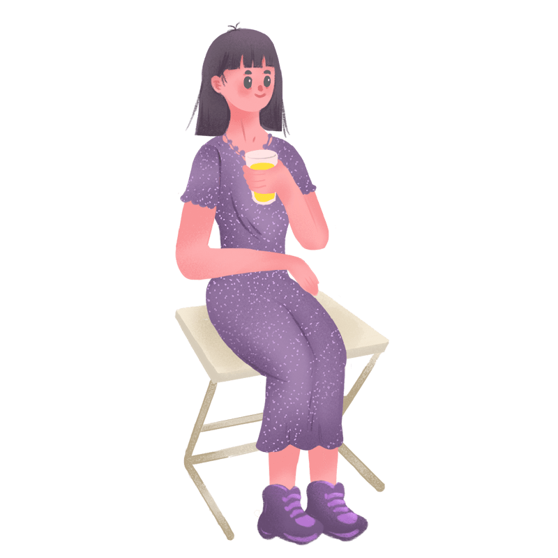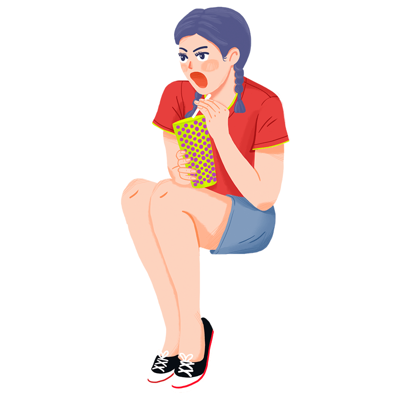 手绘-看球赛人物元素贴纸-爆米花女孩