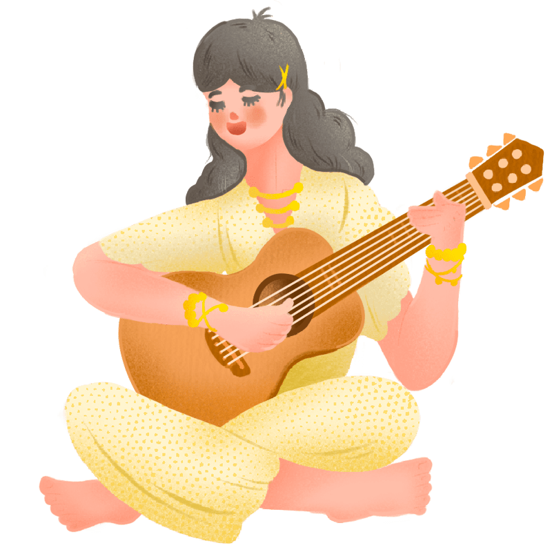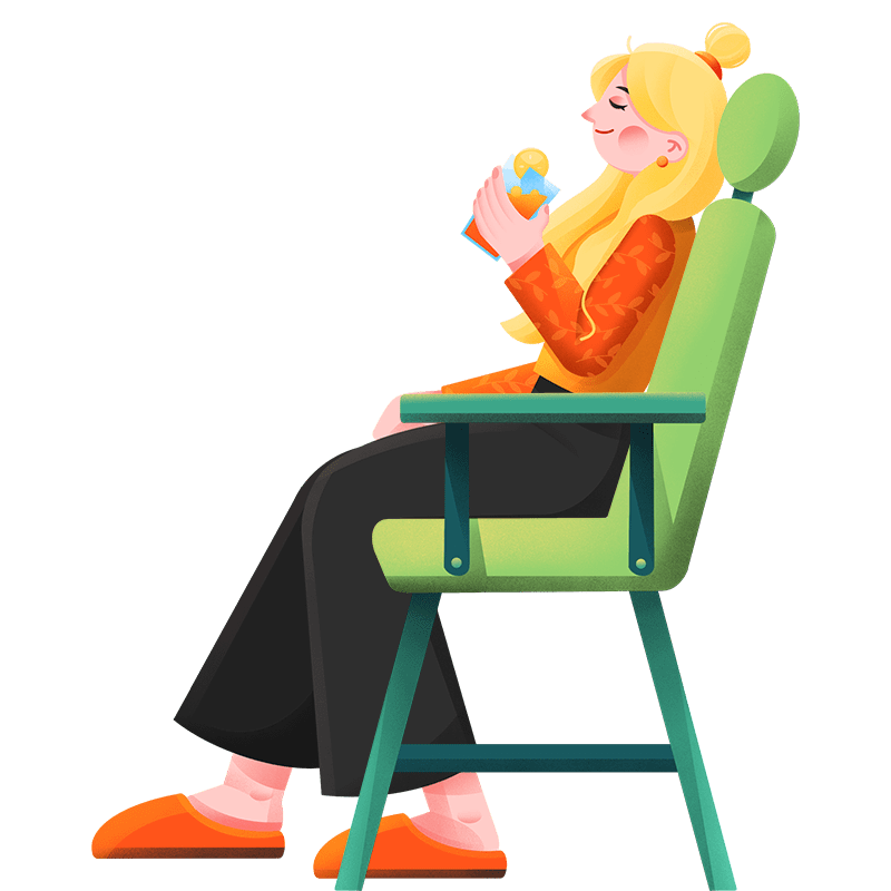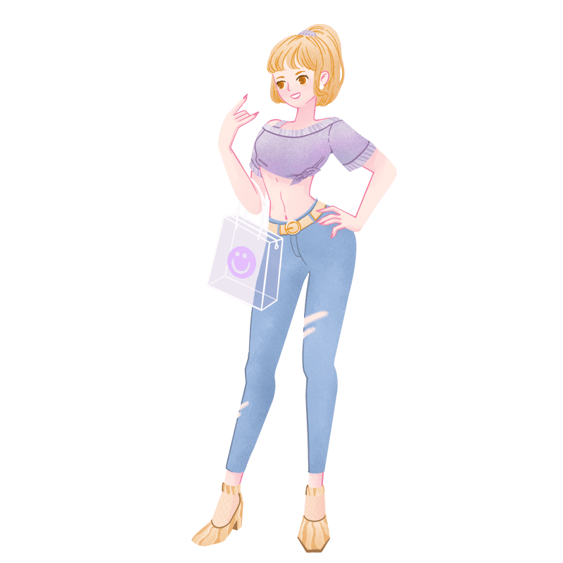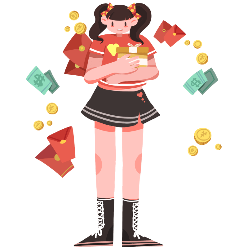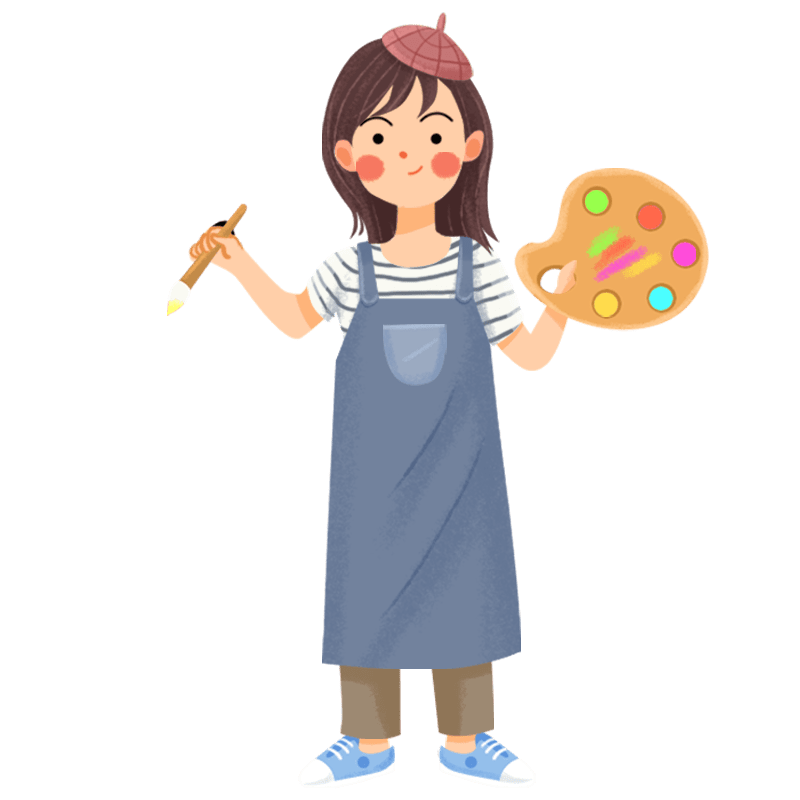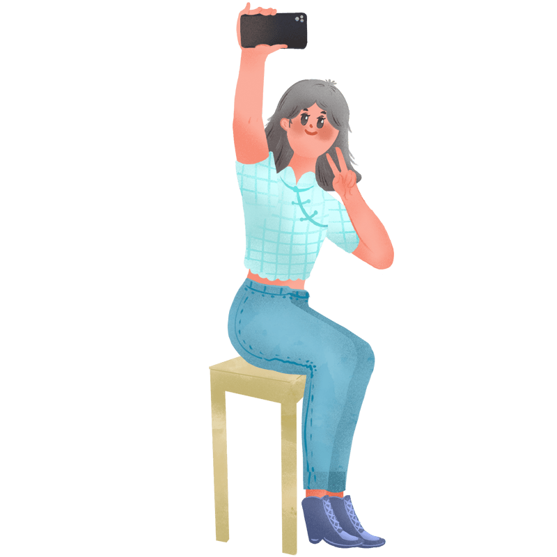 手绘-看球赛人物元素贴纸-爆米花女孩