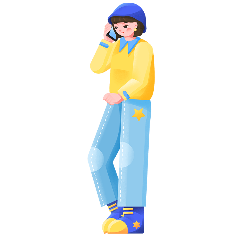 手绘-人物插画贴纸-打电话