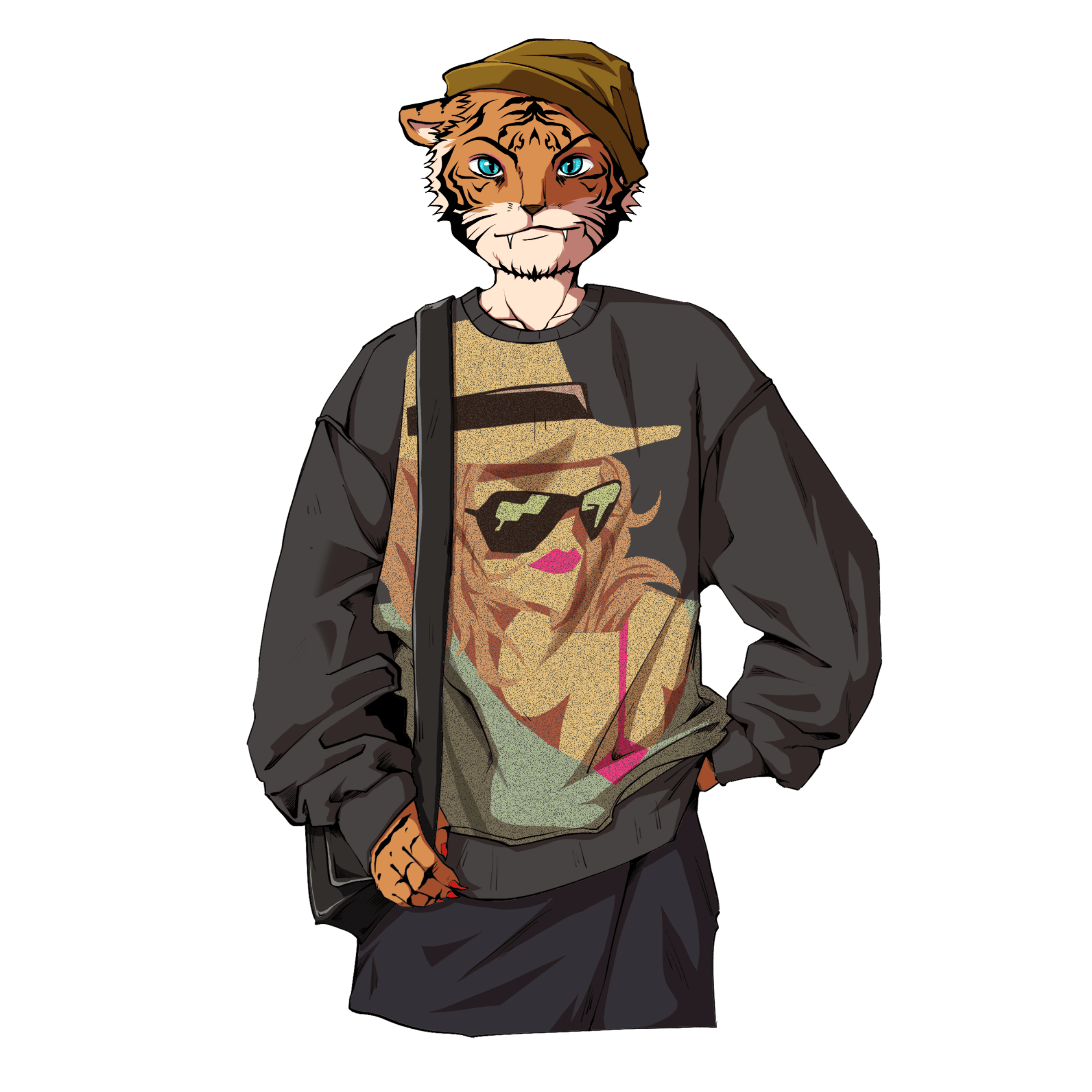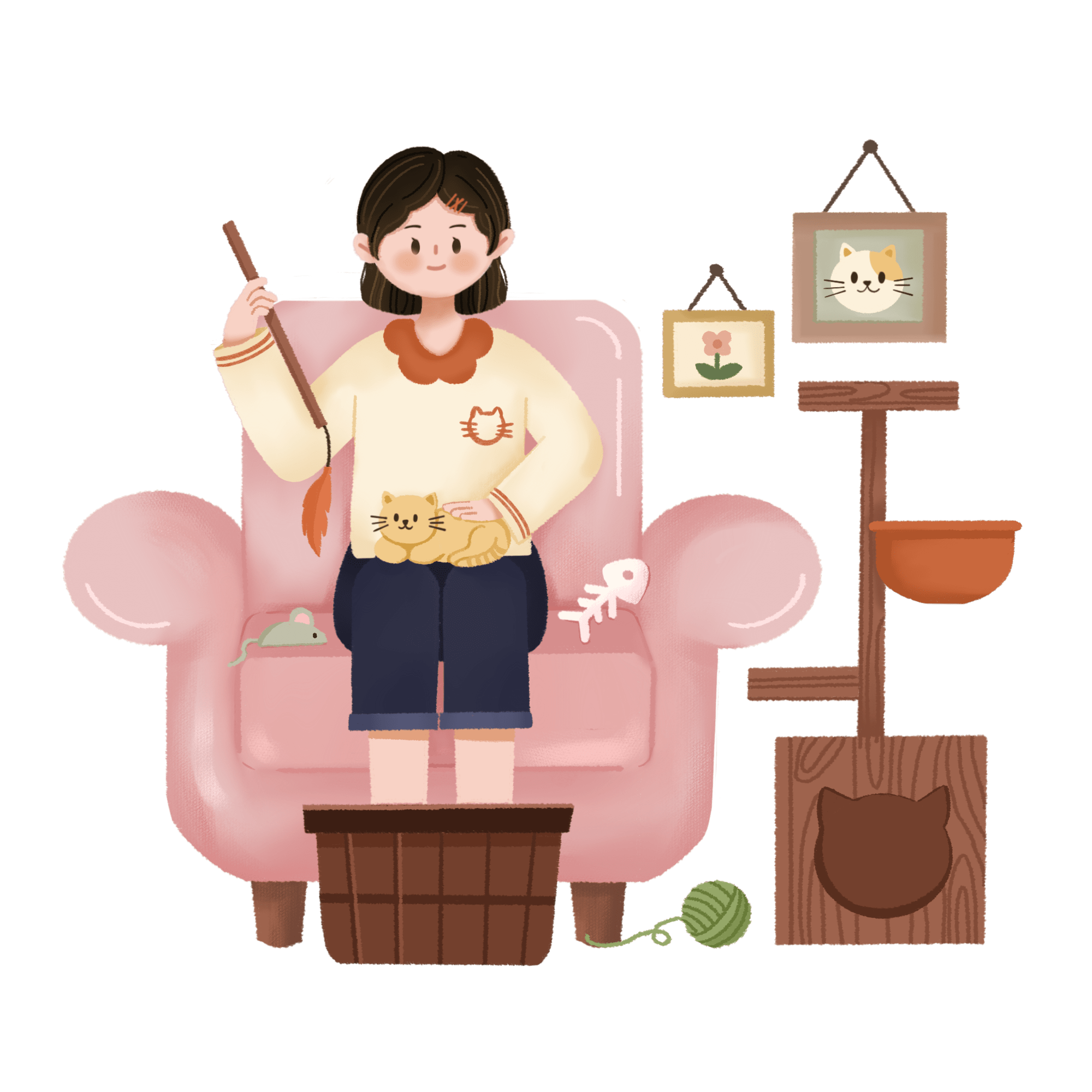 手绘猫咪拟人女性动物元素