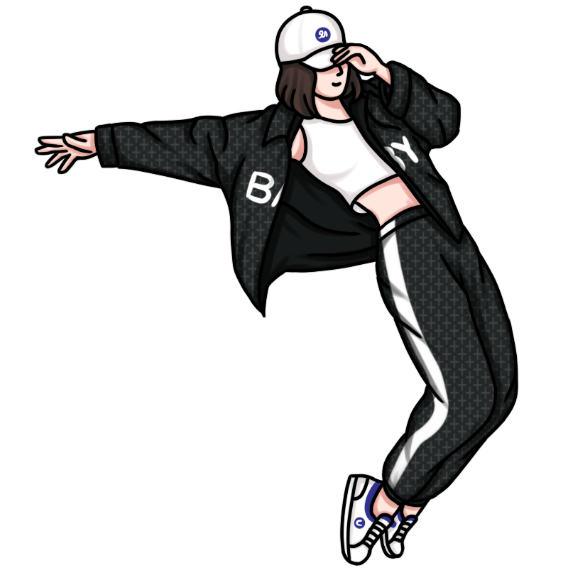 手绘-街舞元素描边人物插画1