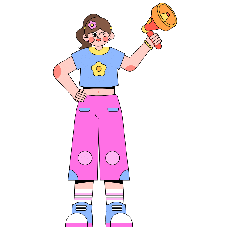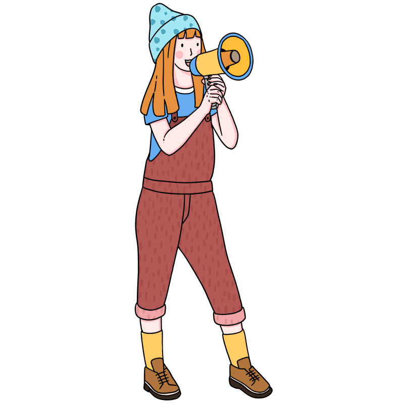 手绘-喇叭播报动作描边人物插画1