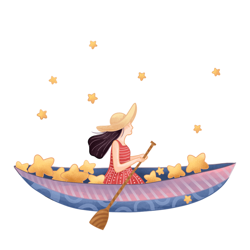 手绘-天鹅动物元素贴纸-划船女孩