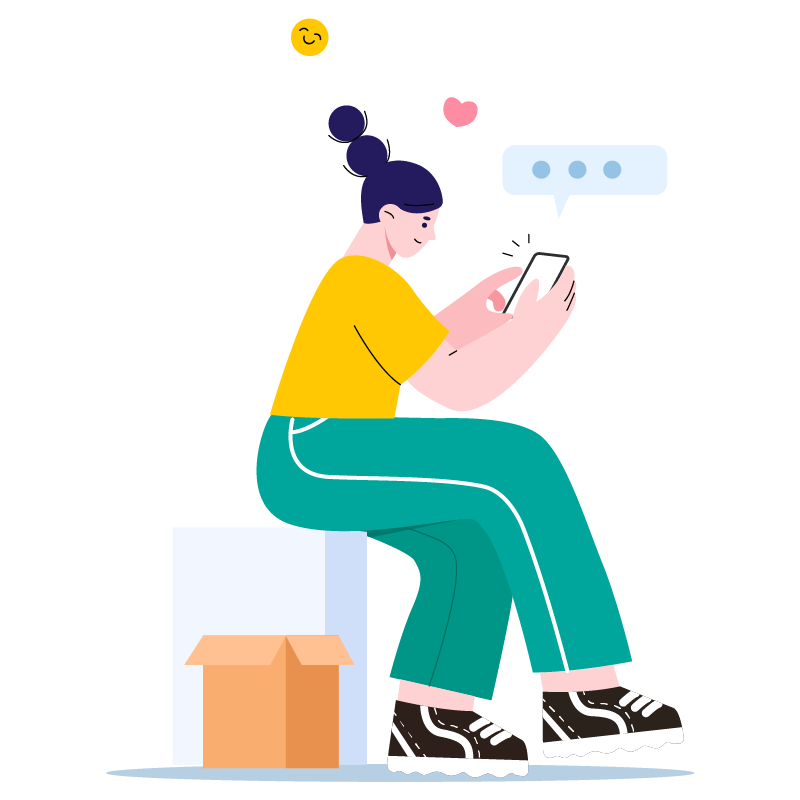 手绘-购物场景贴纸-手机女孩
