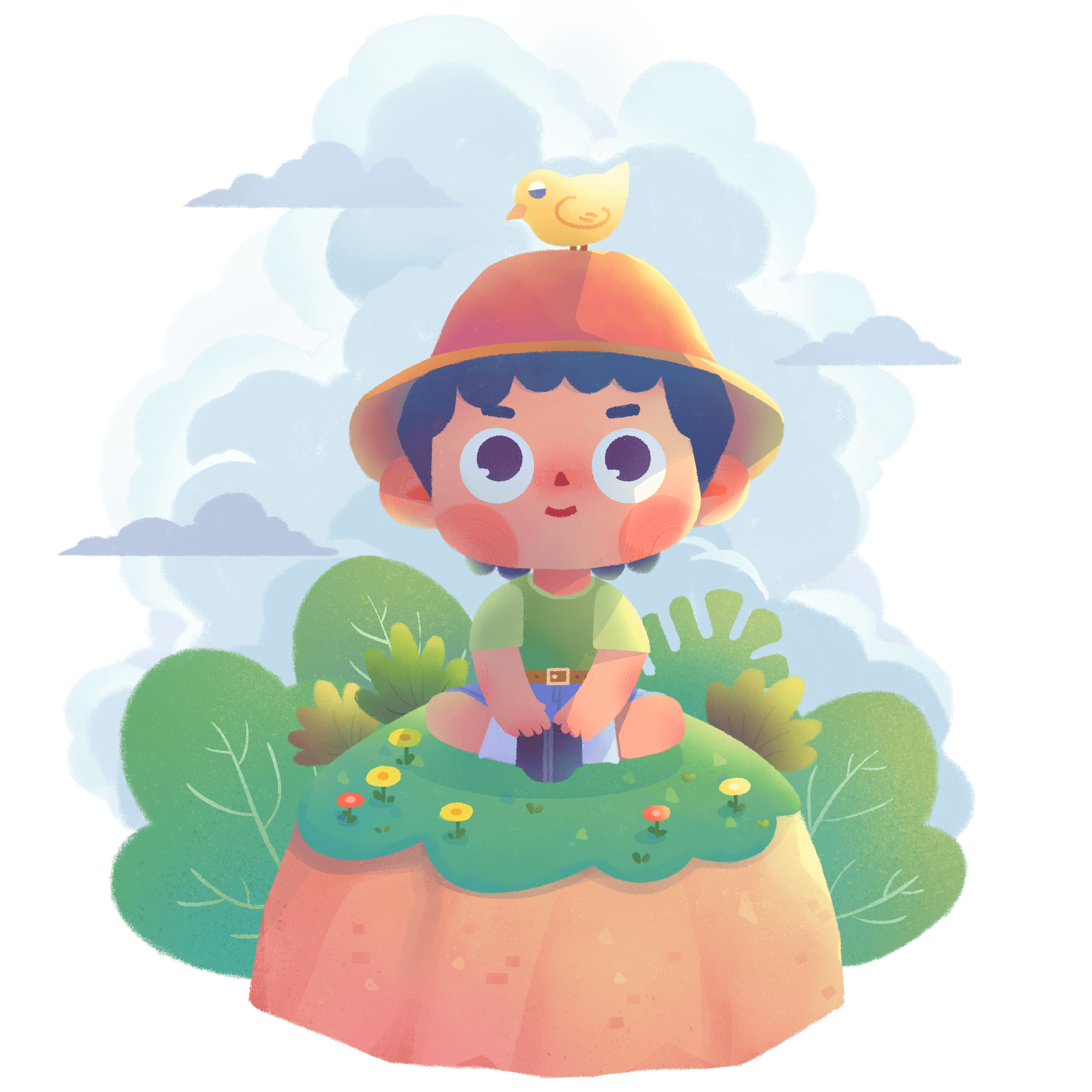 手绘-儿童玩乐场景插画-看风景