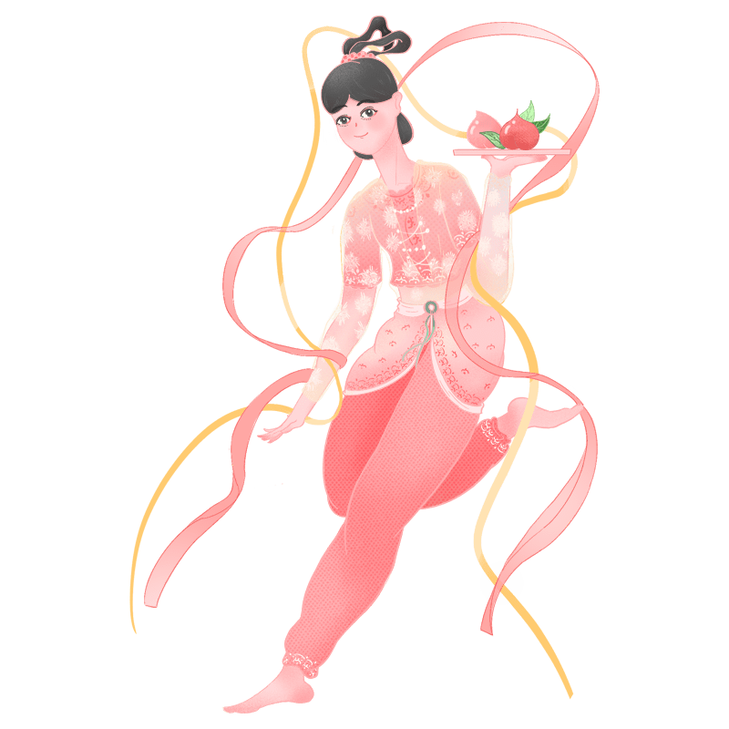 中国风-飞天仙女人物贴纸-桃子