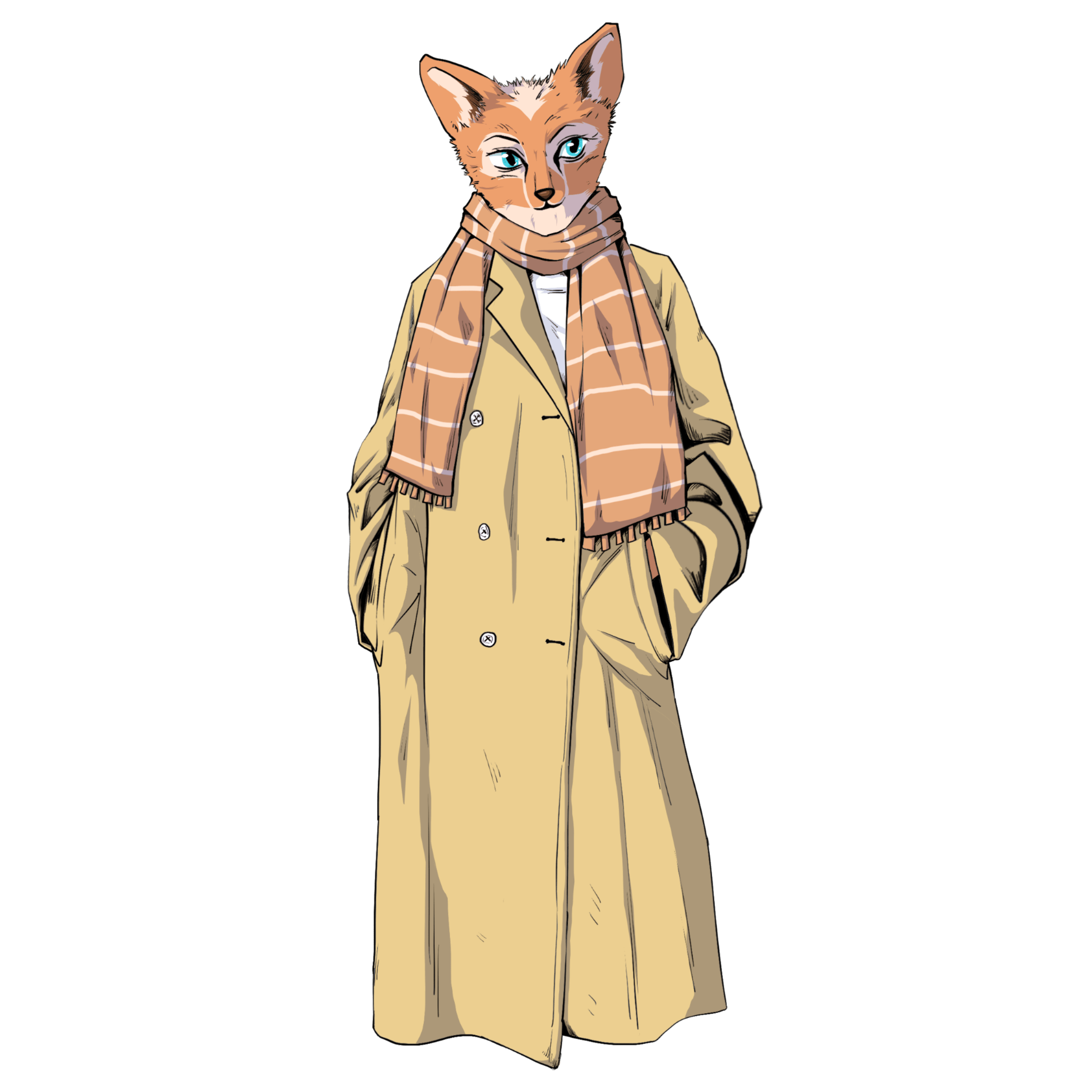 手绘拟人女性动物猫咪观望元素