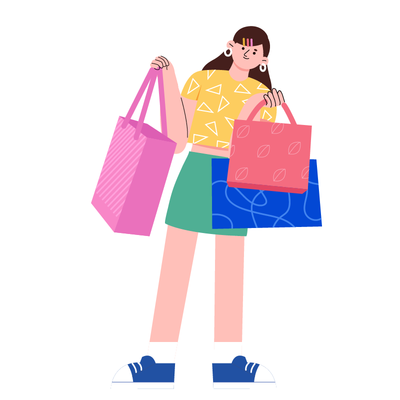 手绘-购物场景贴纸-黄衣女孩