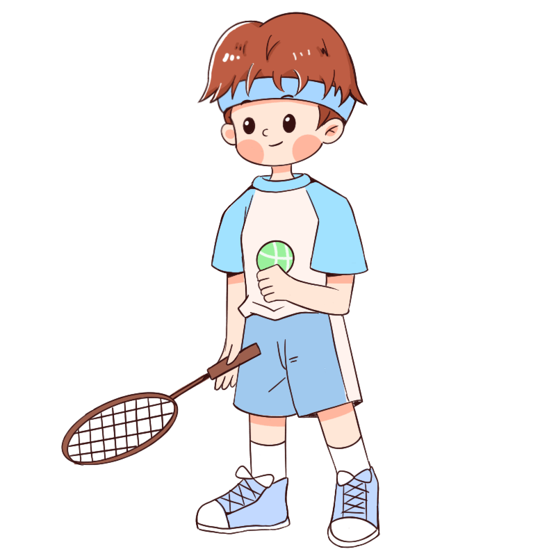 手绘-Q版情人节形象贴纸-打羽毛球2