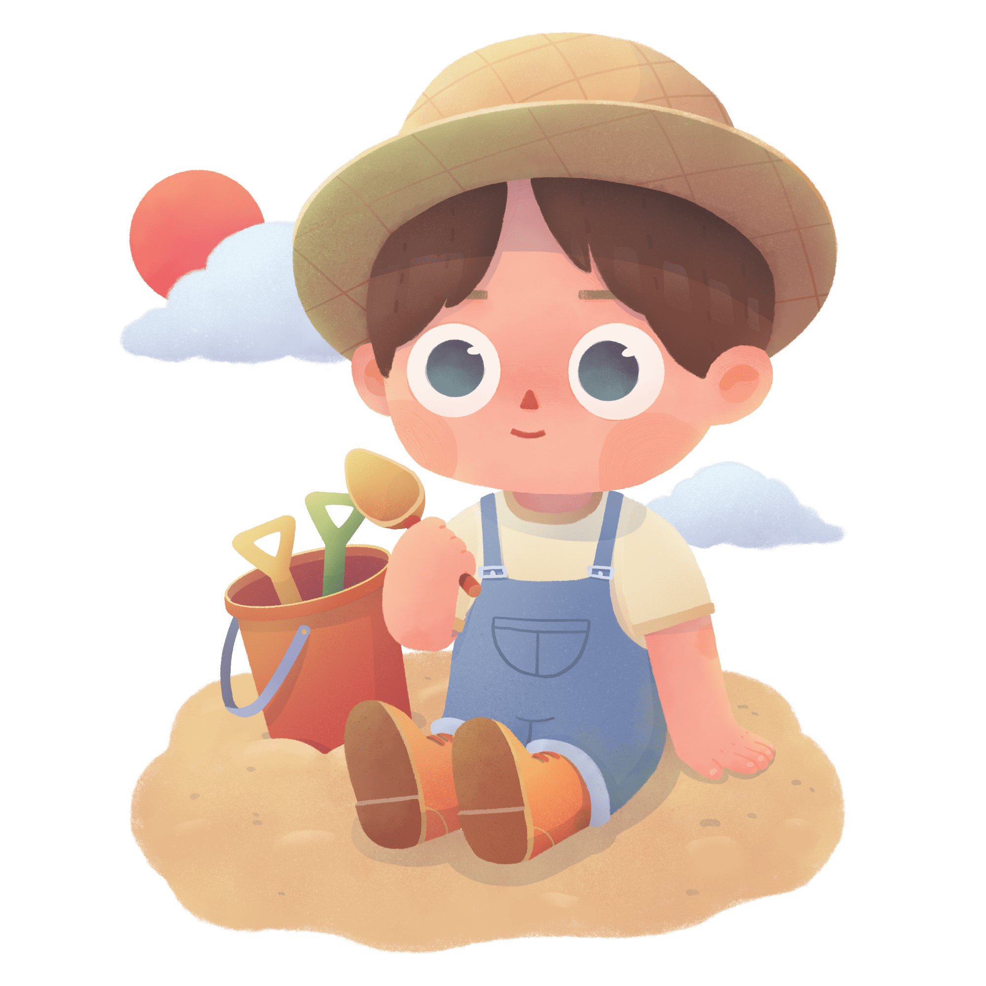 手绘肌理-感恩节人物元素贴纸-短发女儿