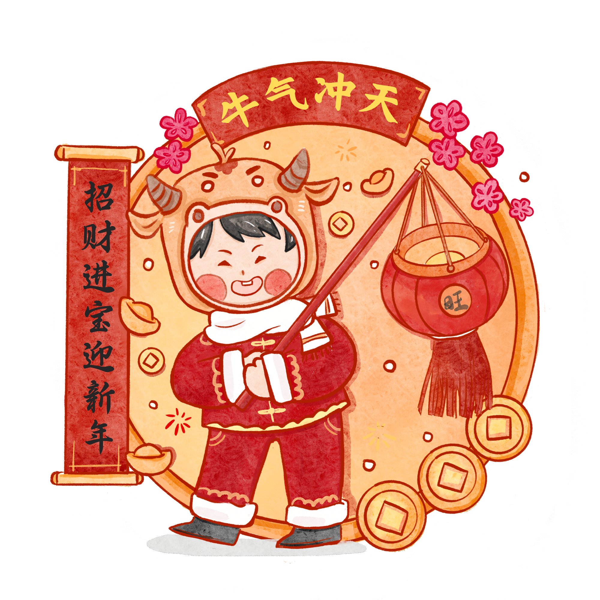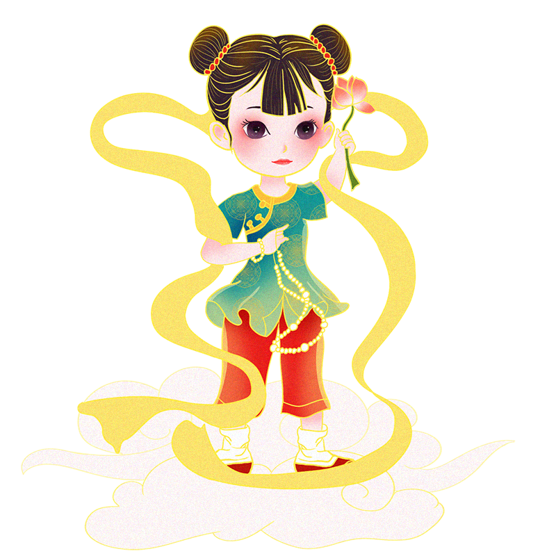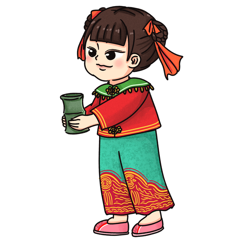 中国风-传统节气人物活动元素贴纸-盛水女孩