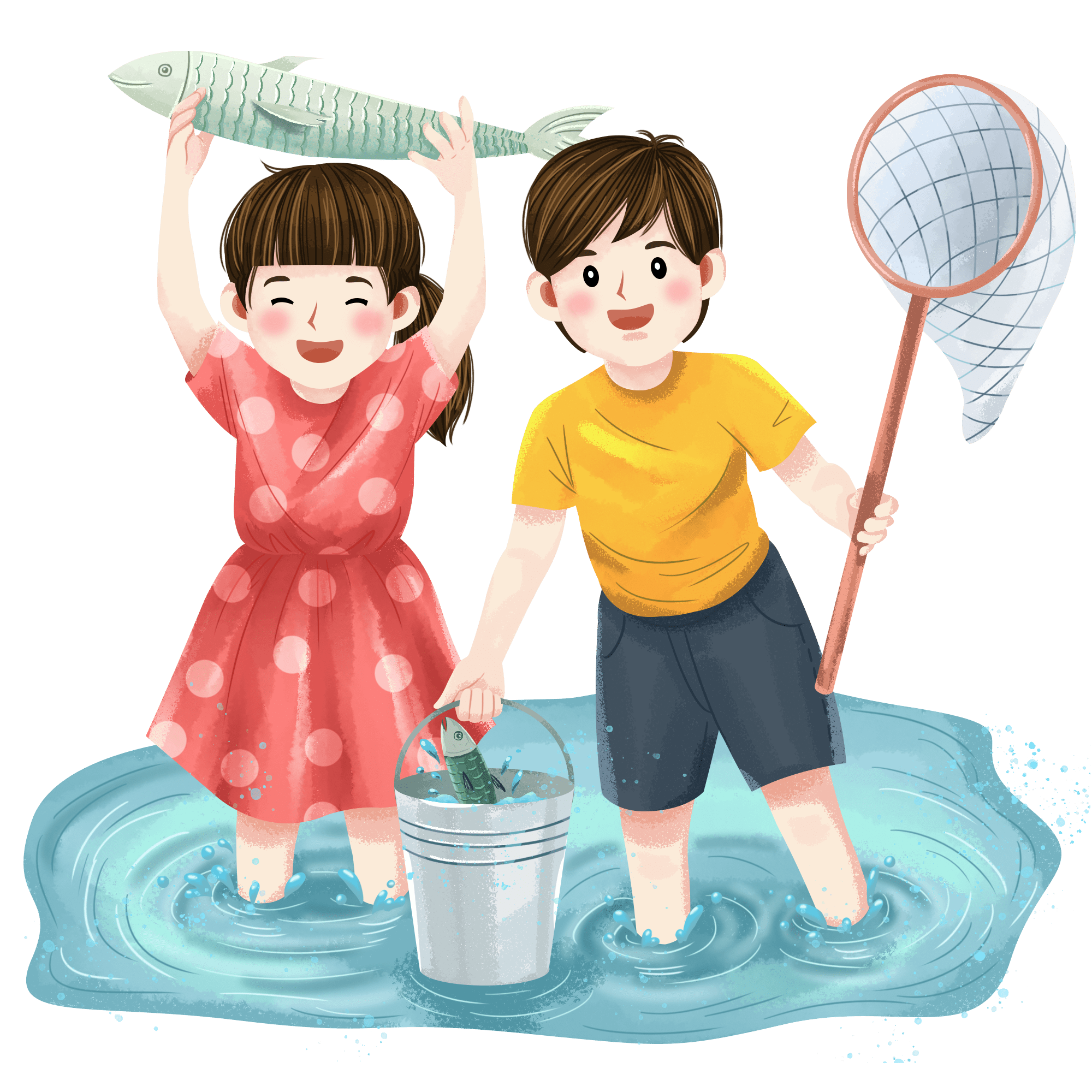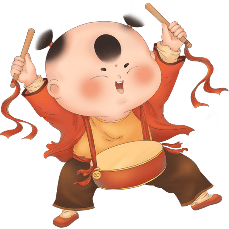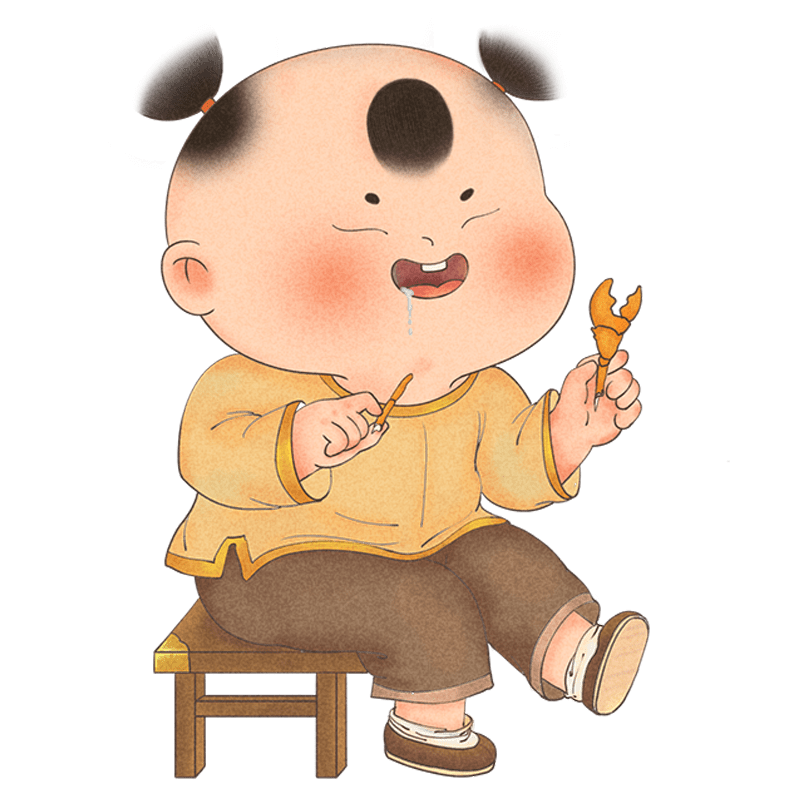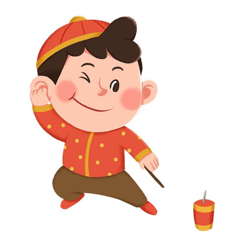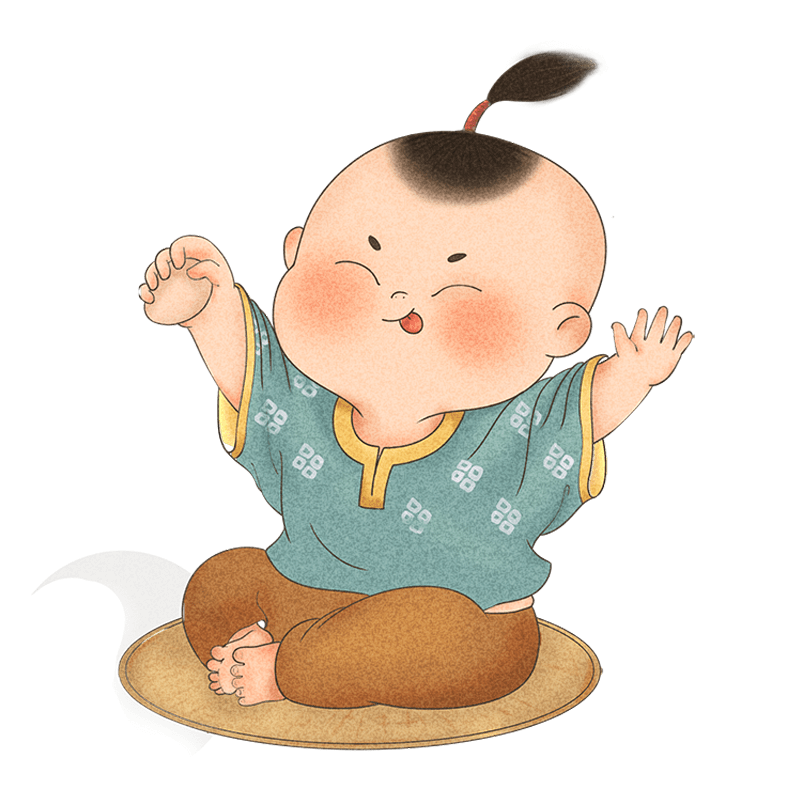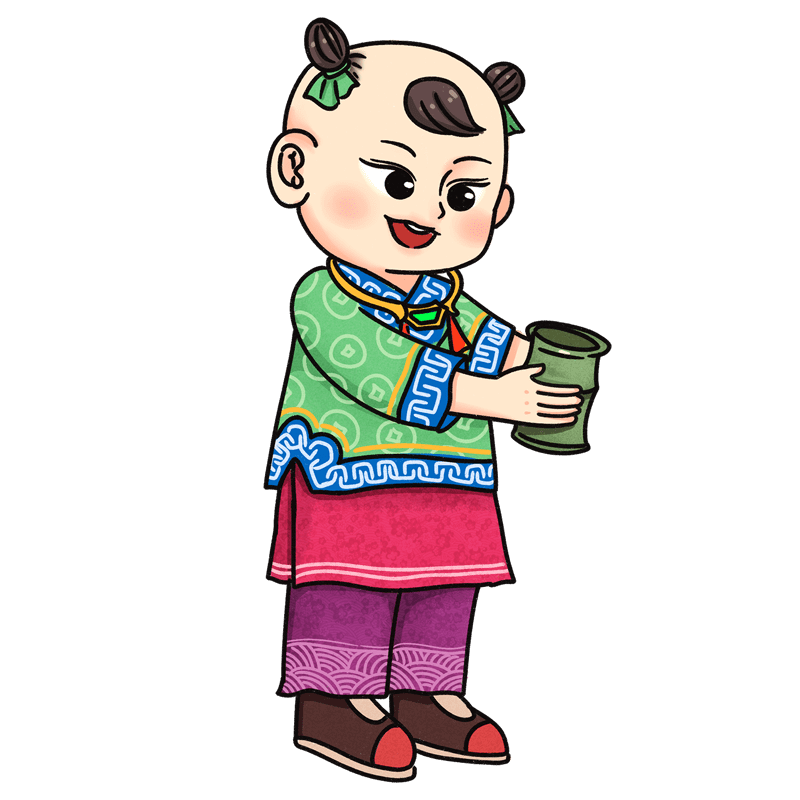 中国风-传统节气人物活动元素贴纸-拿杯子小男孩