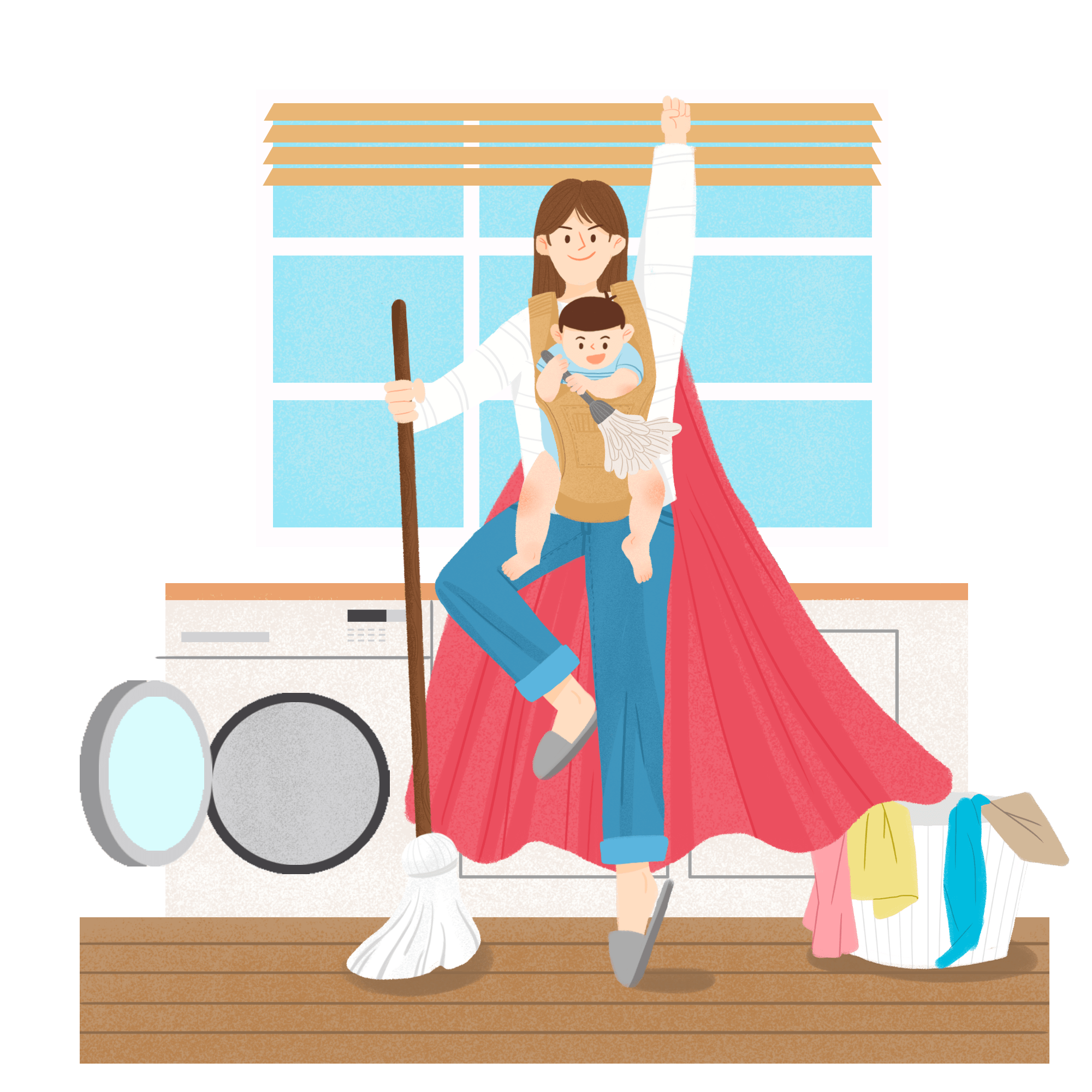 手绘-母亲节大尺寸贴纸-打扫卫生