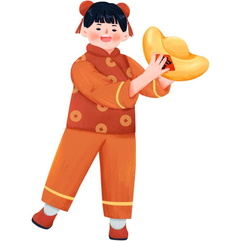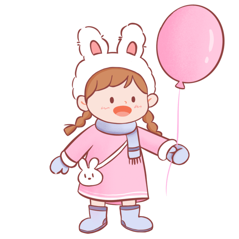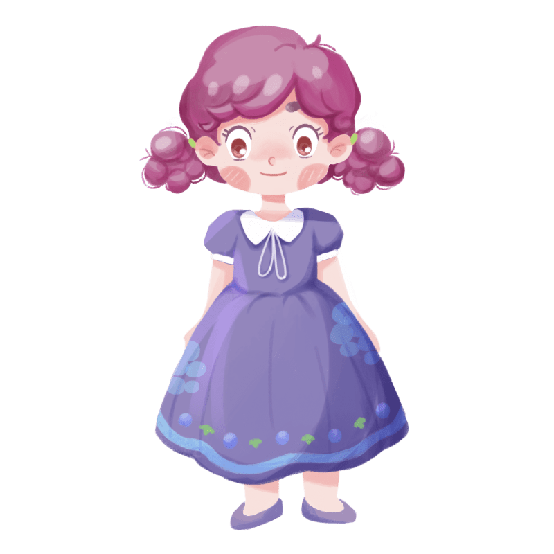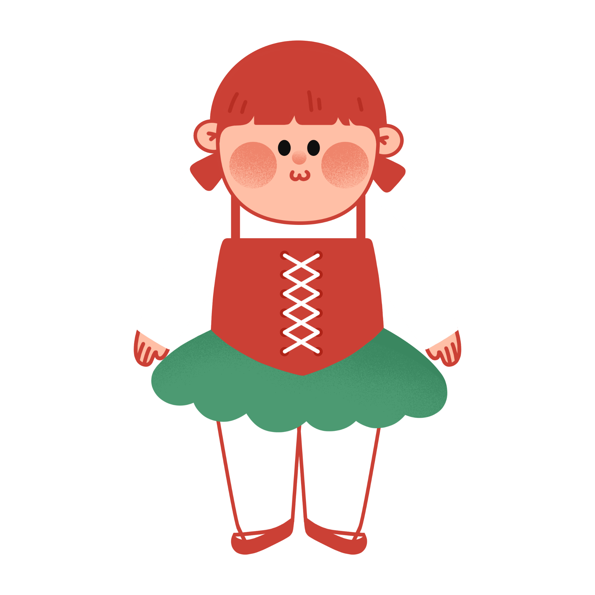 手绘肌理-感恩节人物元素贴纸-丸子头小女孩