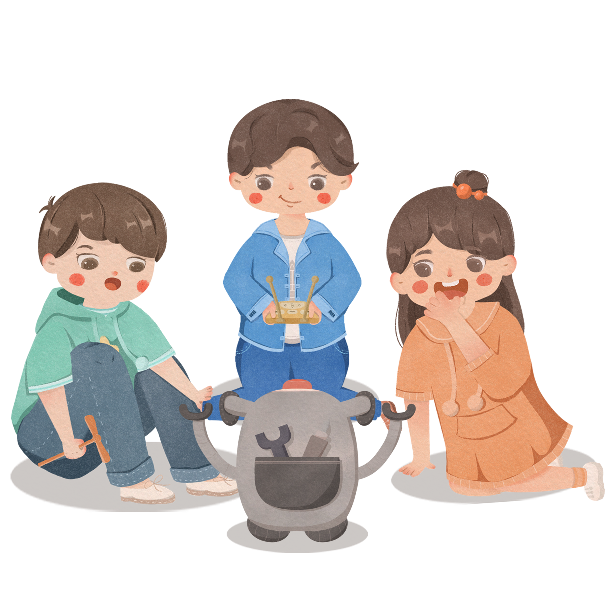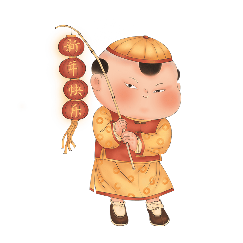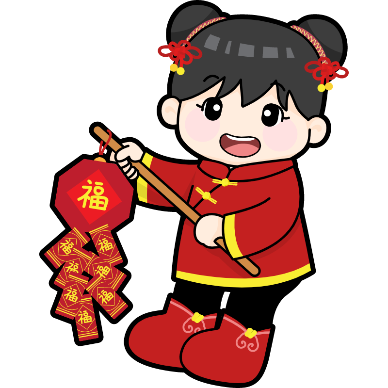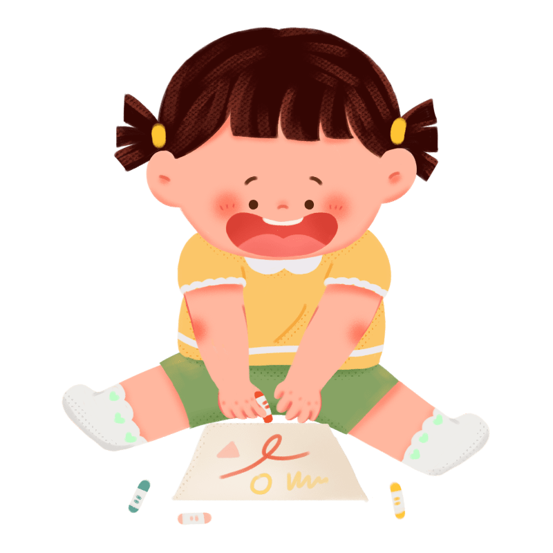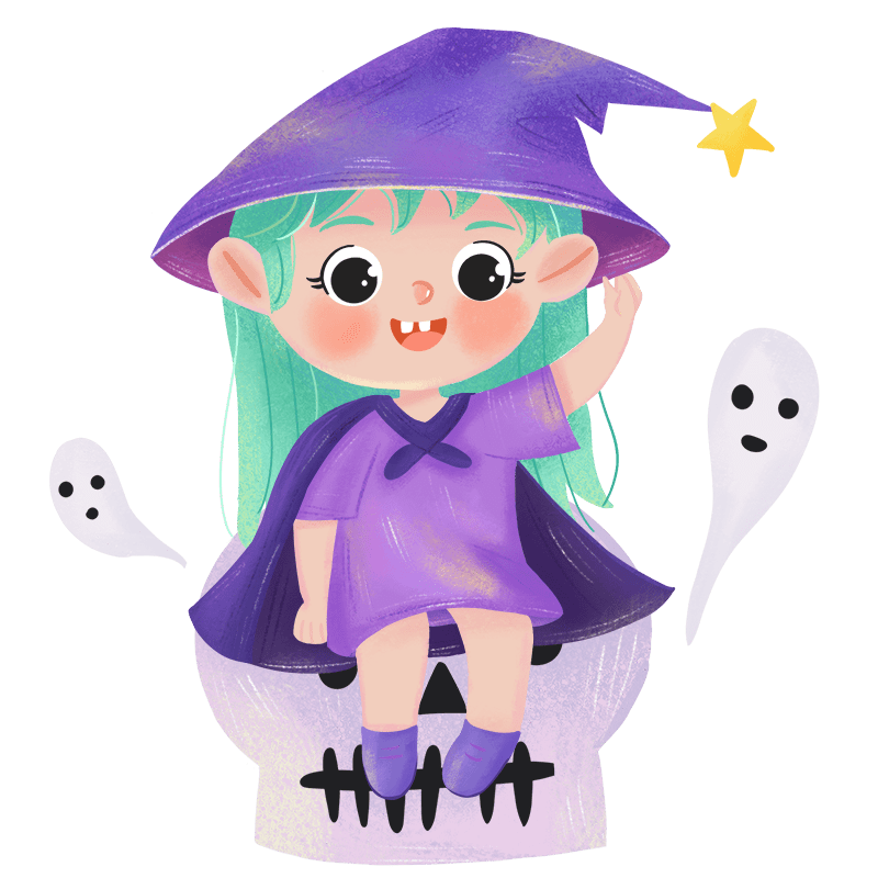 手绘肌理-感恩节人物元素贴纸-丸子头小女孩