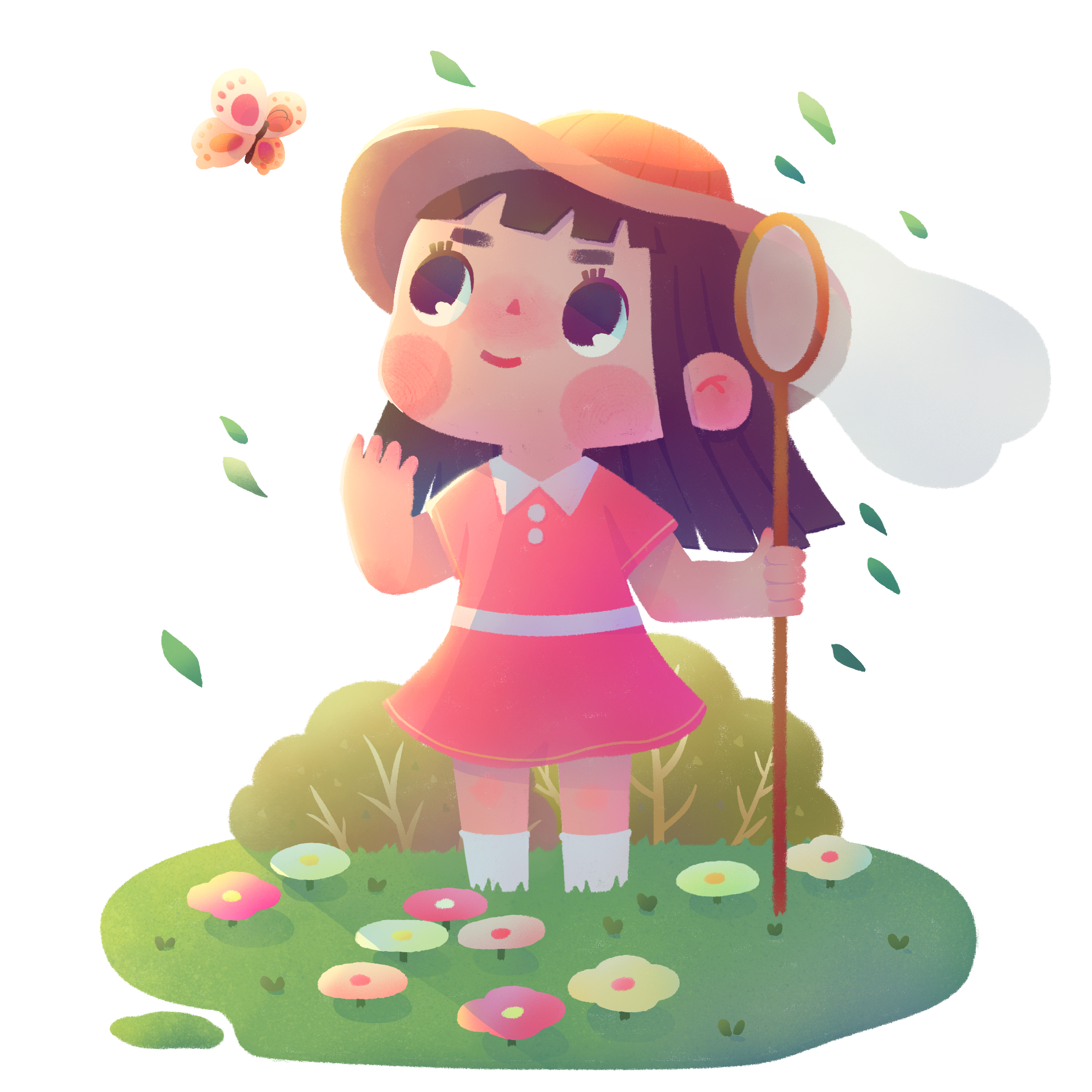 手绘-儿童玩乐场景插画-捉蝴蝶