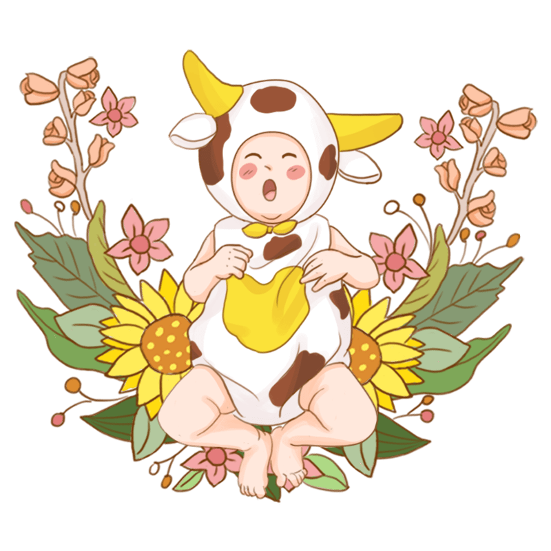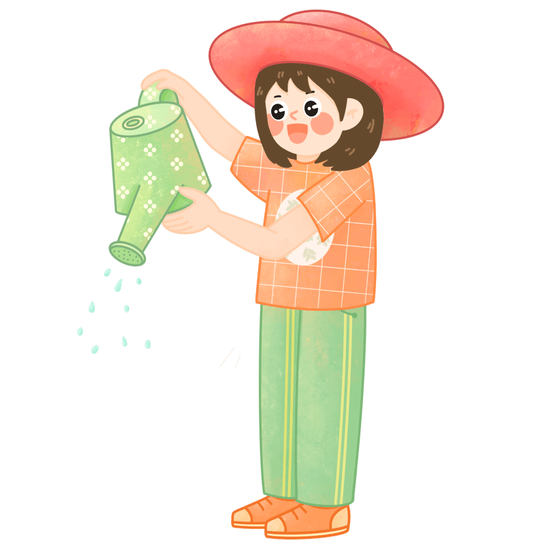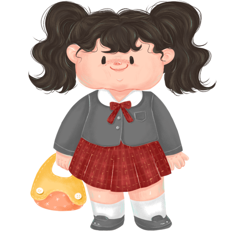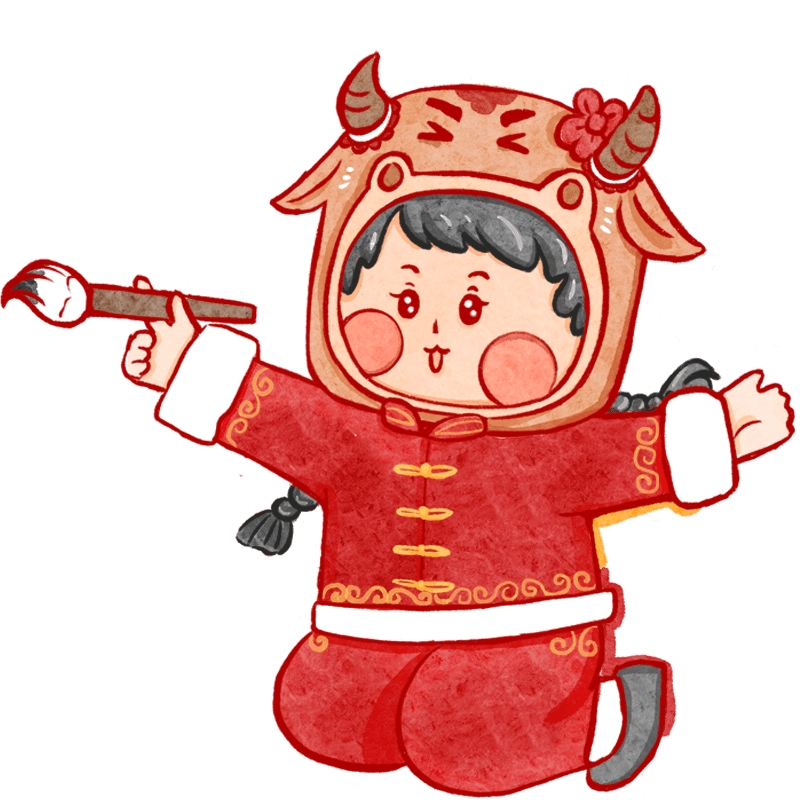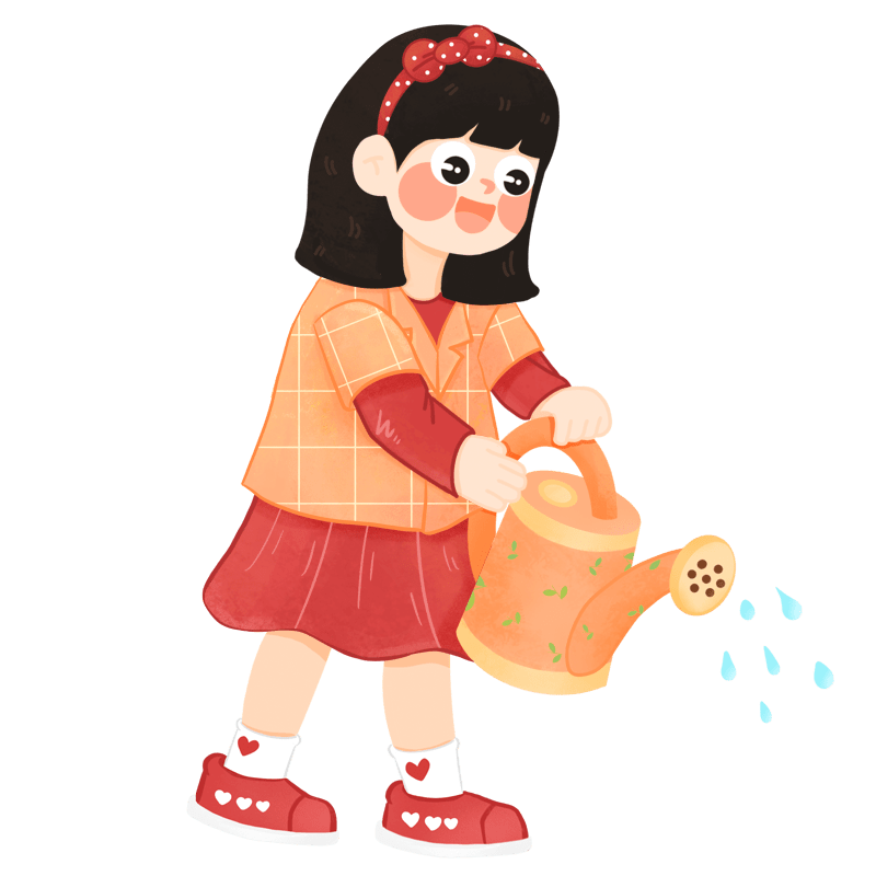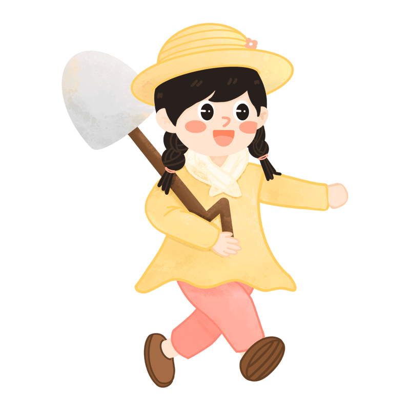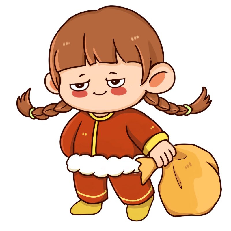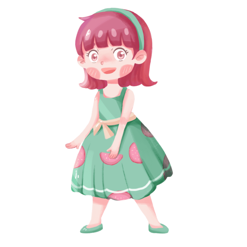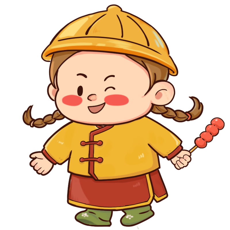手绘肌理-感恩节人物元素贴纸-马尾女孩