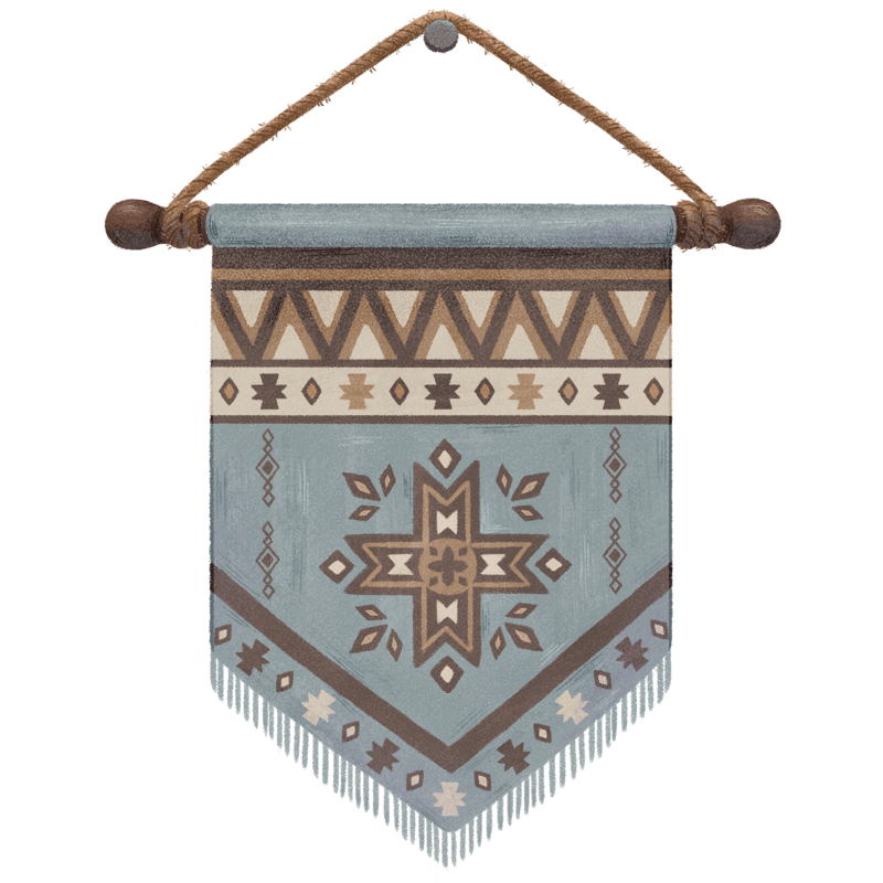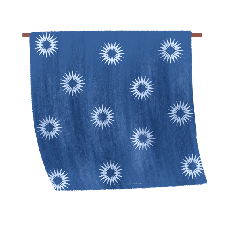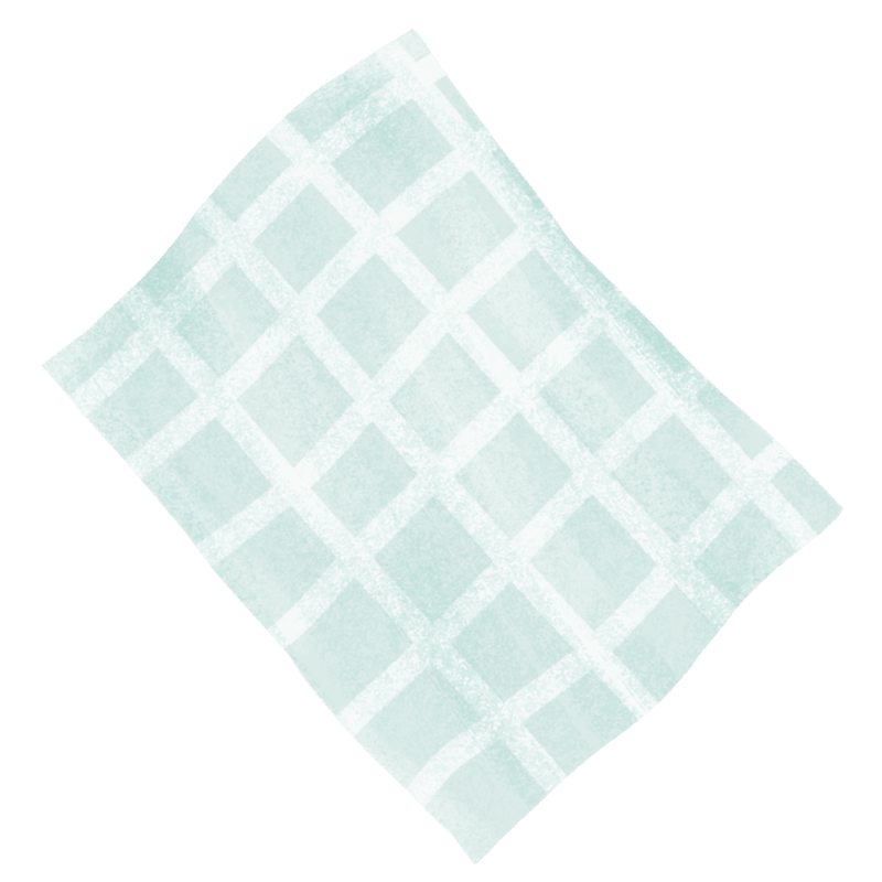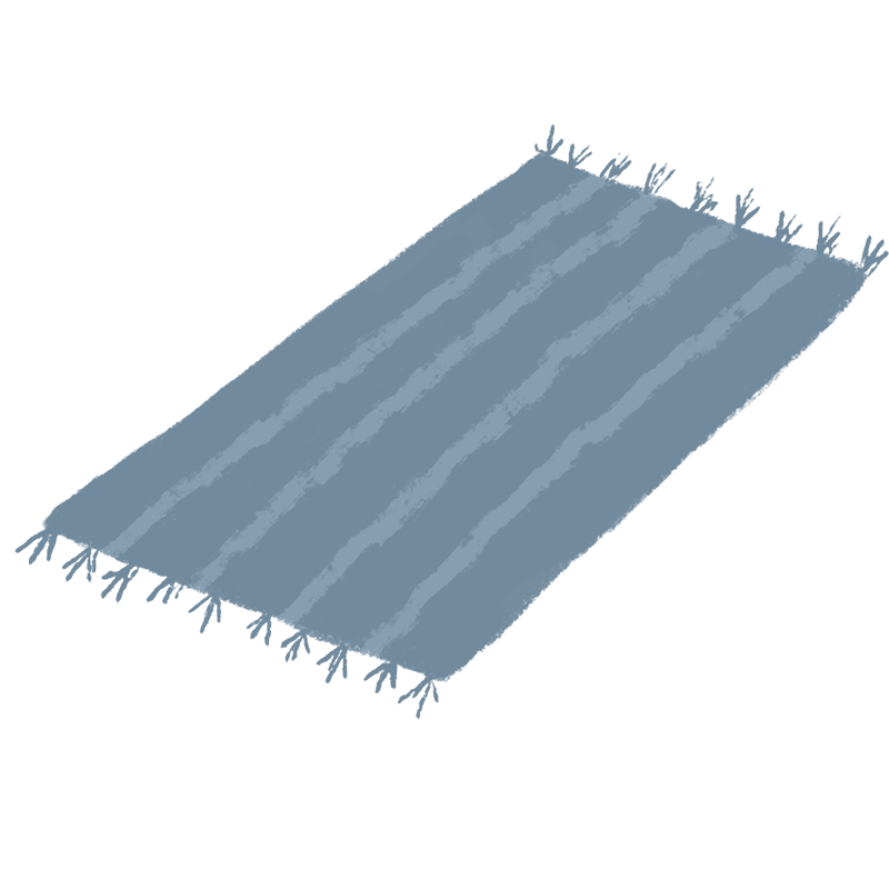 手绘-泡脚人物元素贴纸-蓝色条纹毯子