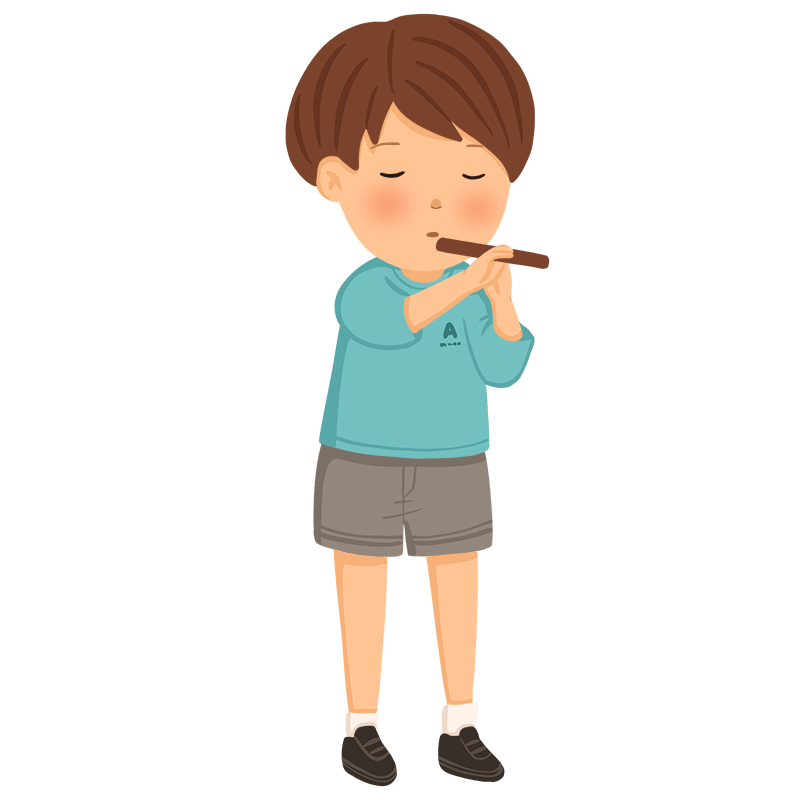 手绘-卡通儿童兴趣班贴纸-吹笛子