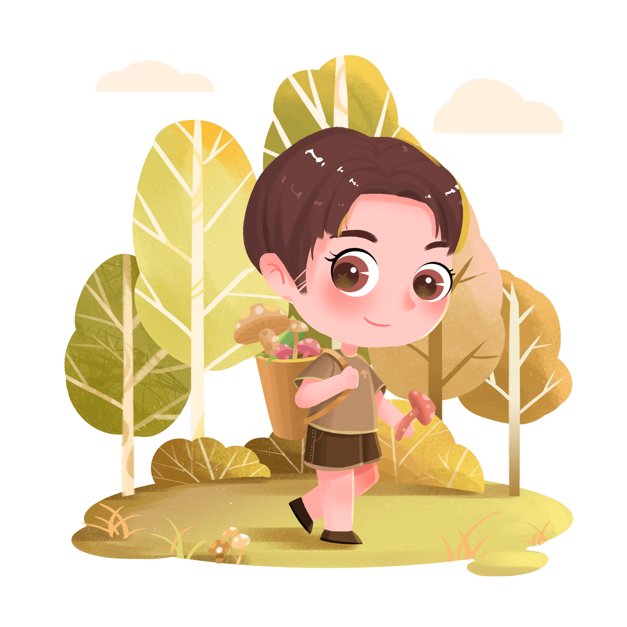 手绘-校园课外活动贴纸-采蘑菇