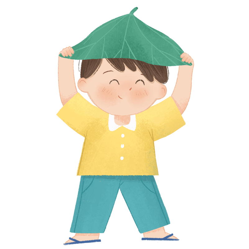 手绘-卡通风儿童人物插画-荷叶