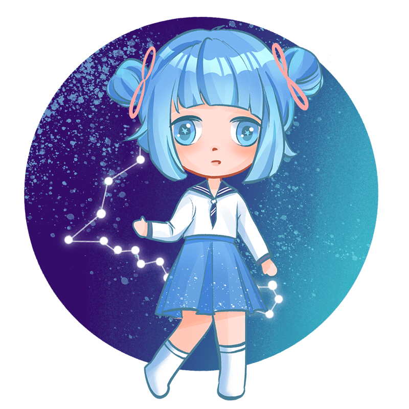 手绘-十二星座人物贴纸-双鱼座