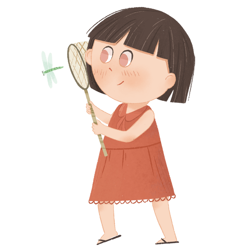 手绘-卡通风儿童人物插画-蜻蜓