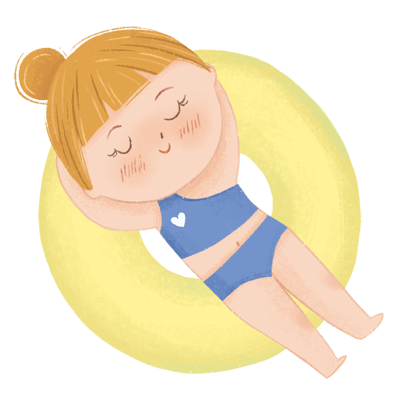 手绘-卡通风儿童人物插画-游泳圈