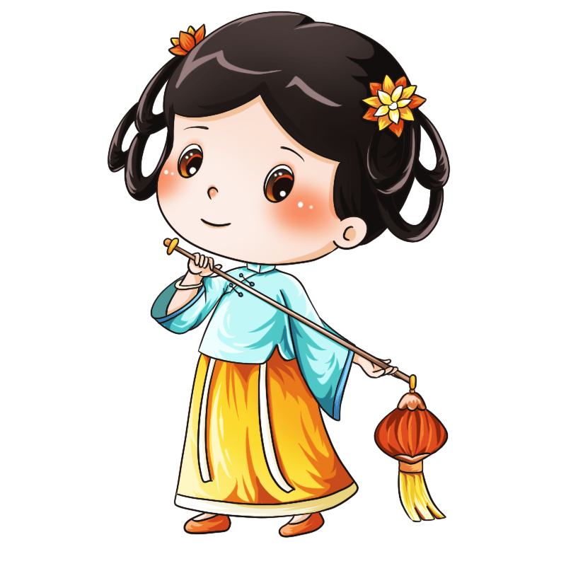手绘-卡通国潮人物插画贴纸-灯笼