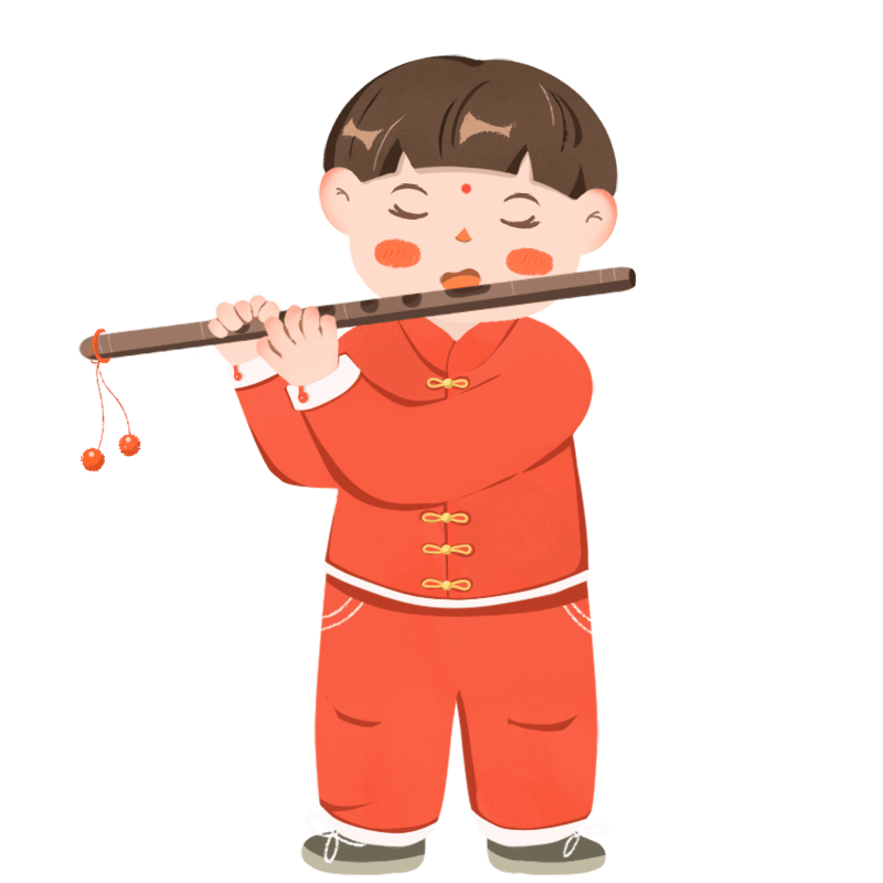 手绘-儿童国学兴趣班贴纸-吹笛子