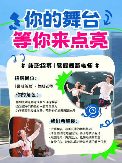 舞蹈兼职招聘宣传招生兴趣班小红书封面
