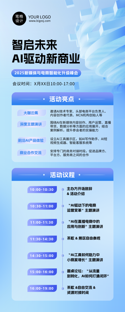 会议安排蓝色简约长图海报