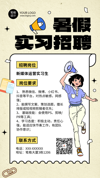 求职招聘暑假实习兼职简约海报