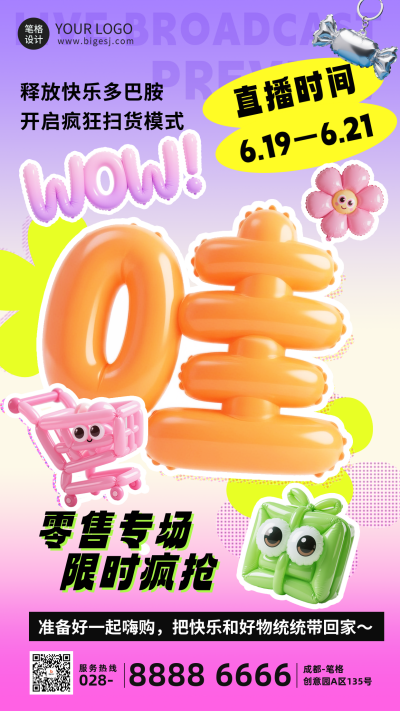 电商直播促销活动3D宣传海报