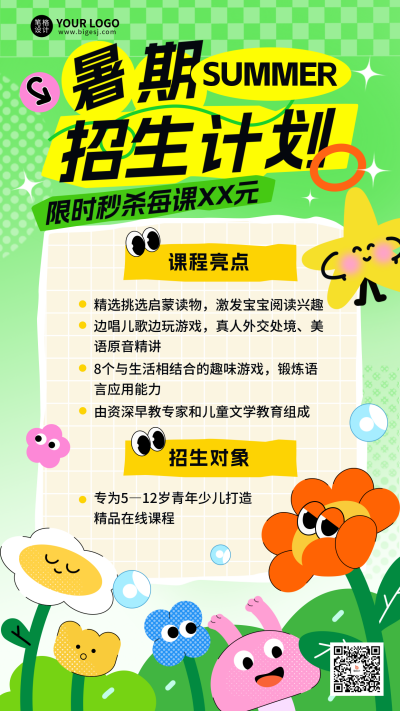 暑假班教育课程促销招生宣传海报
