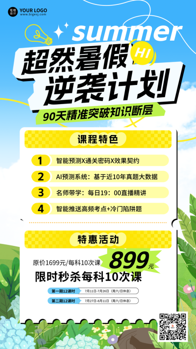 暑假课程宣传活动促销教育培训海报