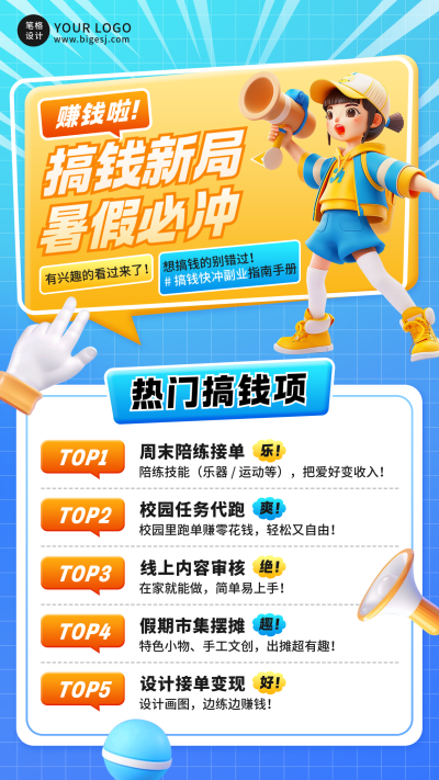 暑假搞钱热门职业3D宣传海报