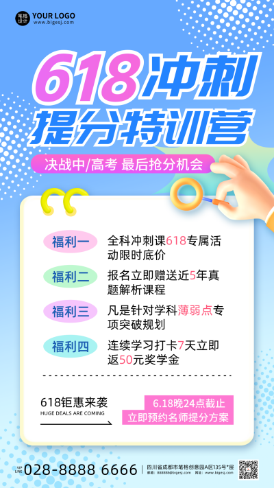 618教育培训活动促销简约手机海报