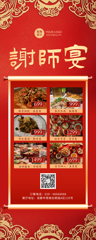 谢师宴活动促销美食餐饮红色国风长图海报
