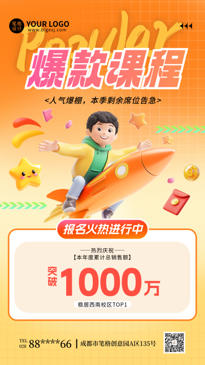 教育培训课程宣传招生3D手机海报
