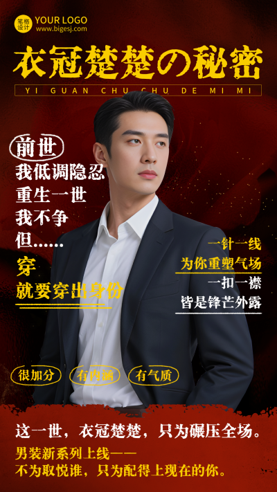 服装促销优惠霸总衣服实景海报