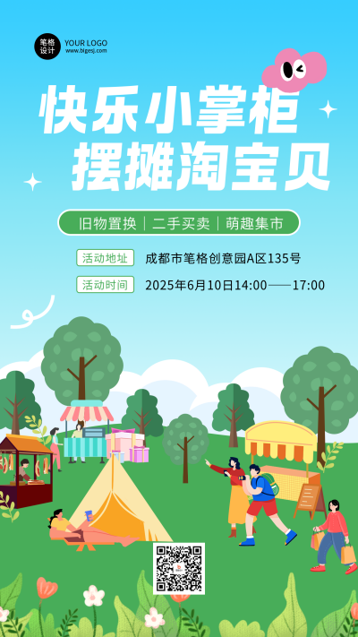 跳蚤市场集市活动手绘营销海报