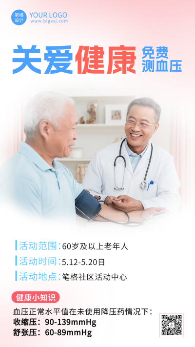 关爱健康免费测血压海报