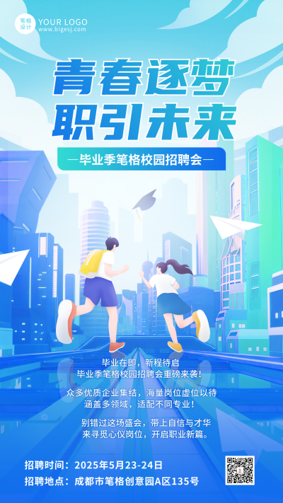 校园招聘会扁平手绘宣传海报