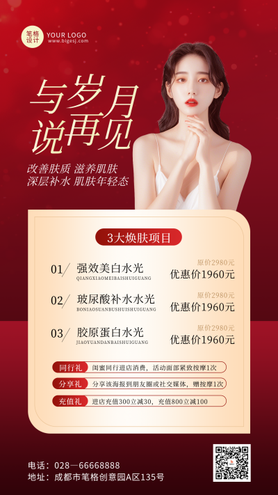 美容护肤活动促销红色宣传海报