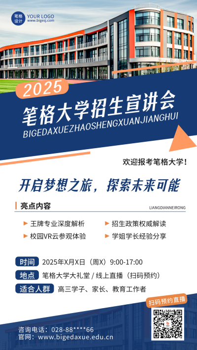 大学招生宣讲会简约实景海报
