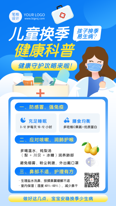 蓝色简约换季健康科普海报